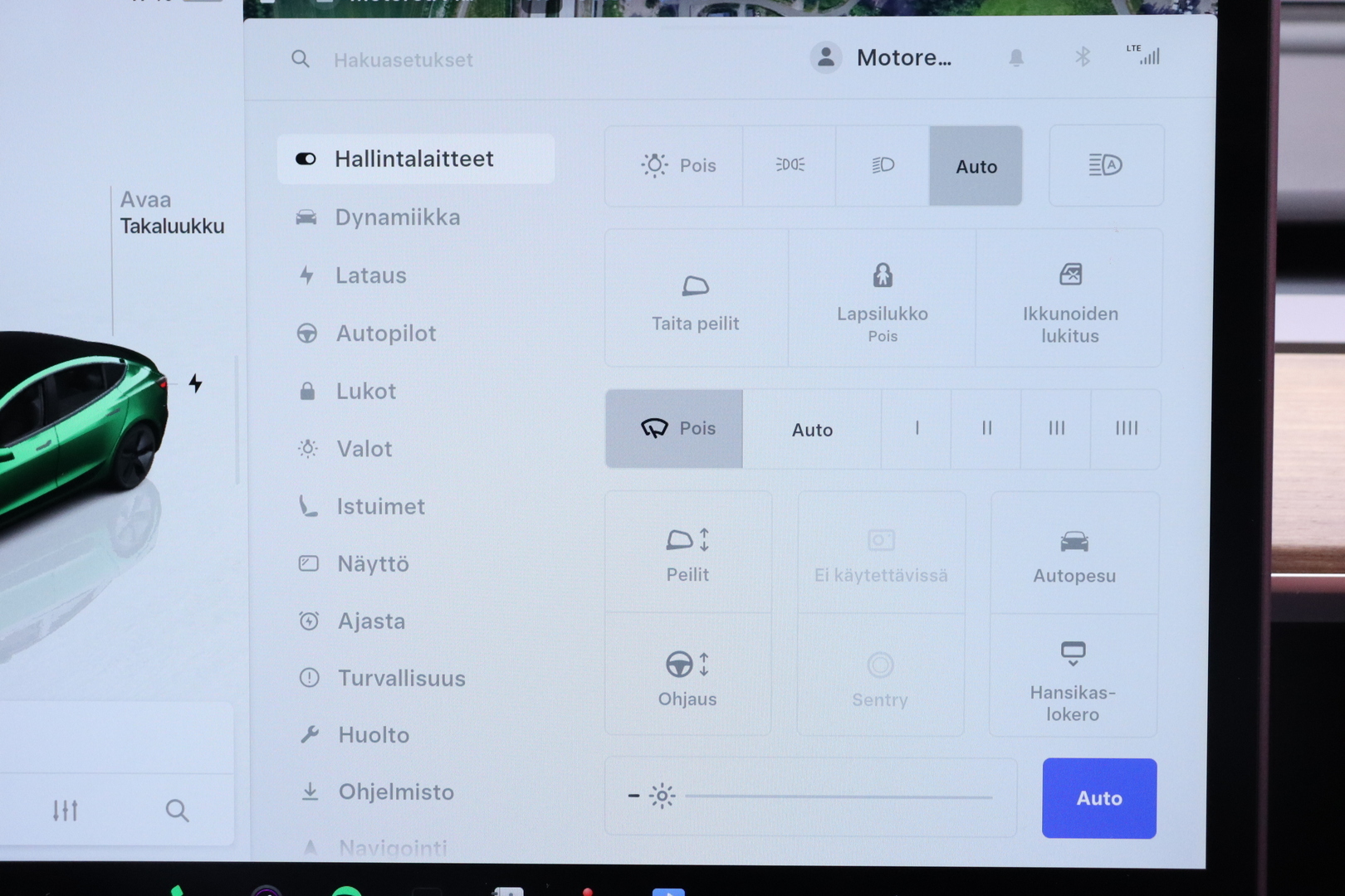 • Ajovalojen automaattinen kytkentä