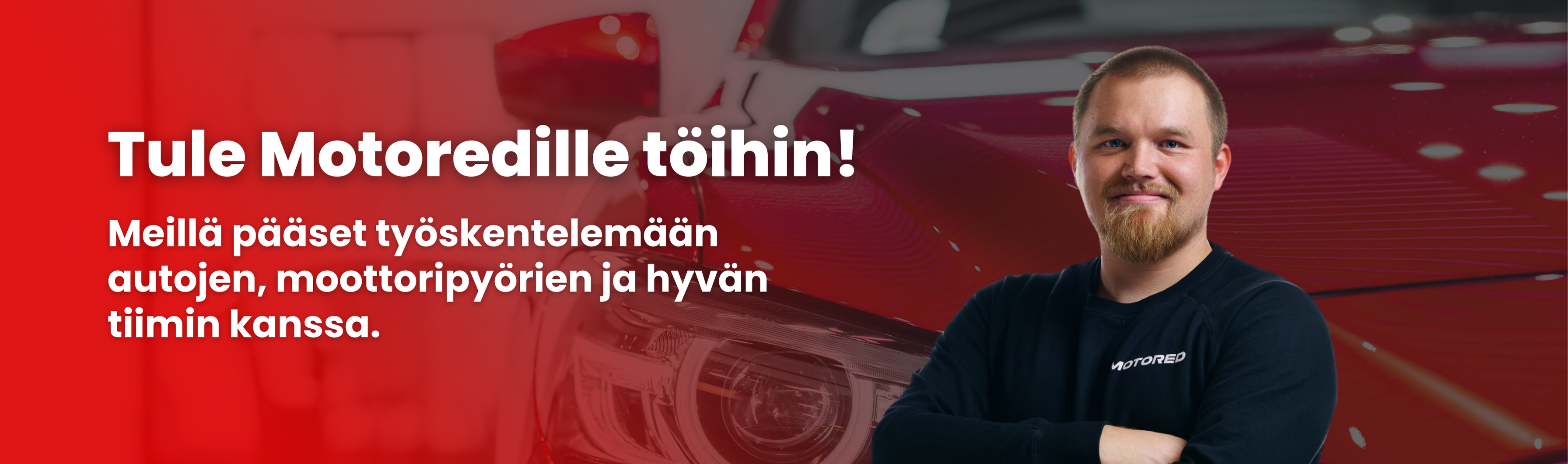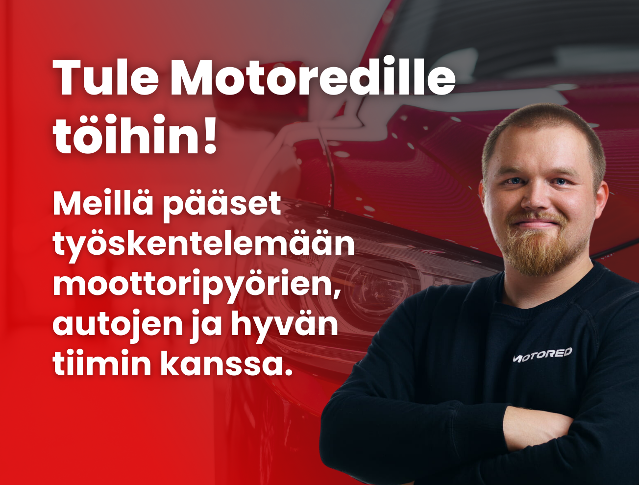 Mikäli olet kiinnostunut työskentelemään Motoredin huipputiimissä voit laittaa avoimen hakemuksen suoraan toimipisteen myyntipäällikölle: